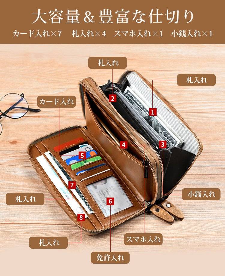 2分鐘前【男士雙拉鍊長錢包】牛皮,多功能,防盜,適合智能手機和存摺,存儲容量壓倒性! - 團購價買二送二:四入組NT$1399