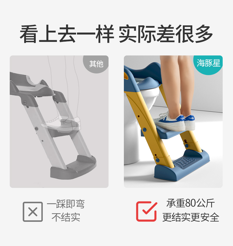 半小時前儿童马桶坐便器楼梯男小孩尿便盆圈女宝宝专用婴儿折叠阶梯脚踩凳 - 【新品體驗】儿童马桶坐便器折叠阶梯脚踩凳1入組