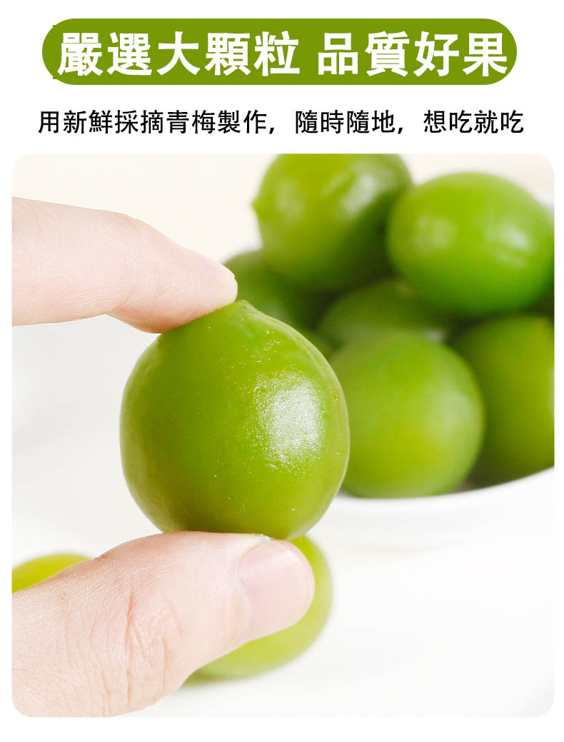 嚴選七分熟新鮮青梅即是脆梅最好的材料。