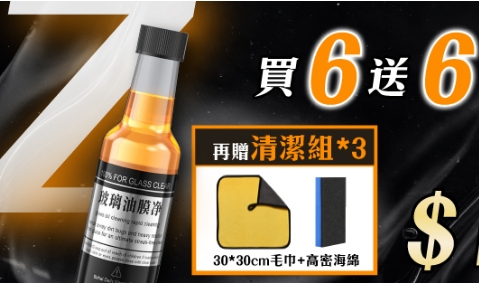 25分鐘前視線不清晰/行車不安全/一罐輕鬆去油膜 油膜玻璃淨 /水珠自然滑下不殘留/倒入玻璃水箱/立刻見效 - 【團購組】買6送6 / 贈清潔用品*3 NT$1180